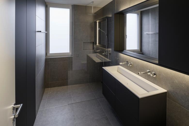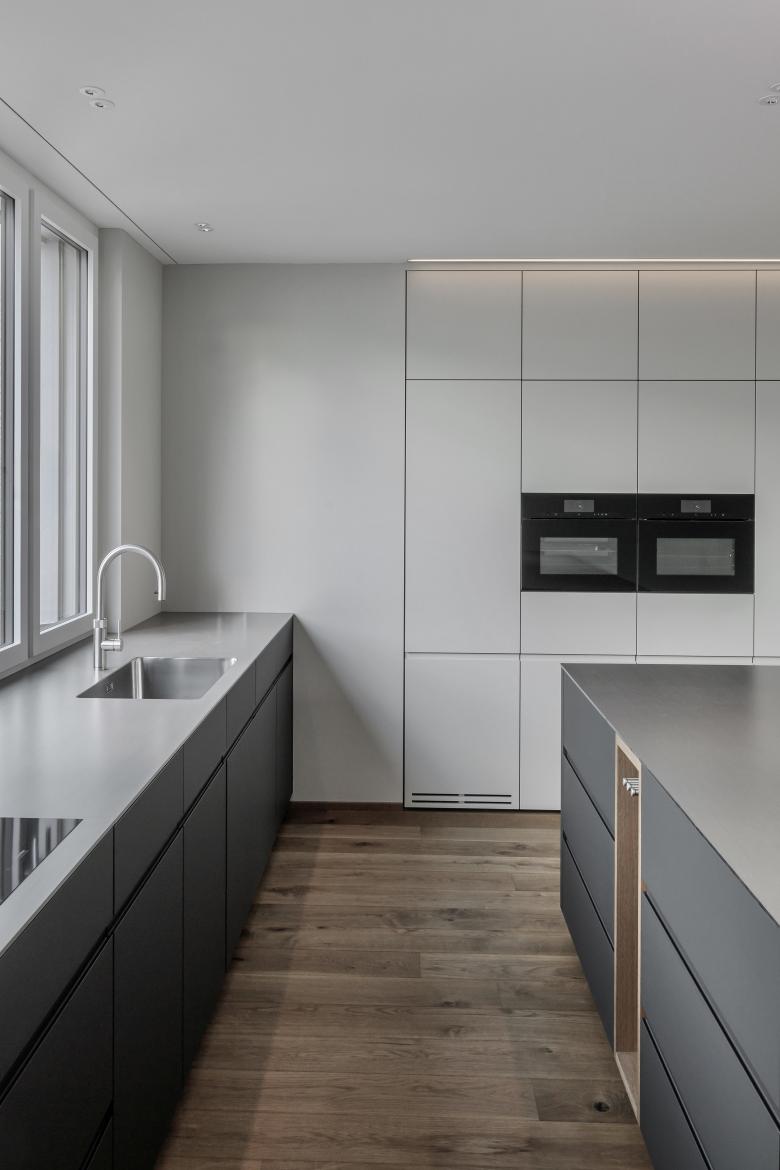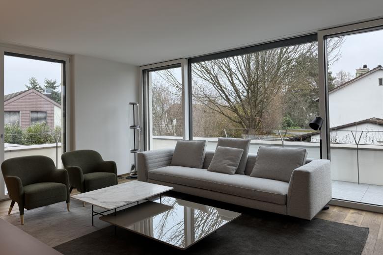 Die Zugänge der jeweiligen Wohnungen sind räumlich getrennt und sorgen dadurch für mehr Privatsphäre. Die Wohnung im Ober‐ / Attikageschoss erschliesst sich über das grosszügige Treppenhaus.