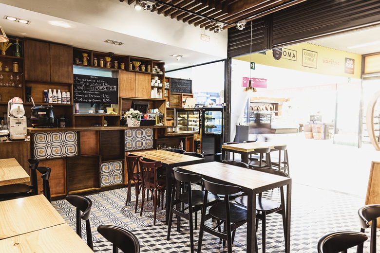 Aromas in Barcelona offers  an ecologic high quality product in an elegant and comfortable atmosphere . As you walk into this Bar you perceive this warm atmosphere, reminiscent of a lounge Barcelones, where coexist design furniture, hydraulic tiles with variable geometry and a sculptural roof that hovers above our presence.