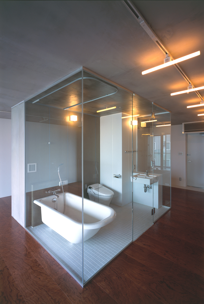 分節されたファサードが示すように、間取りも内装もすべて異なる13の住戸。松戸駅前という高い利便性から、多様な利用形態を想定した。各階で水回りの位置も異なるため、逆梁工法を採用し、床下の梁ふところで設備配管を行っている。