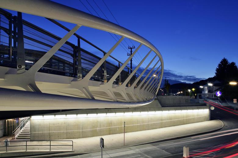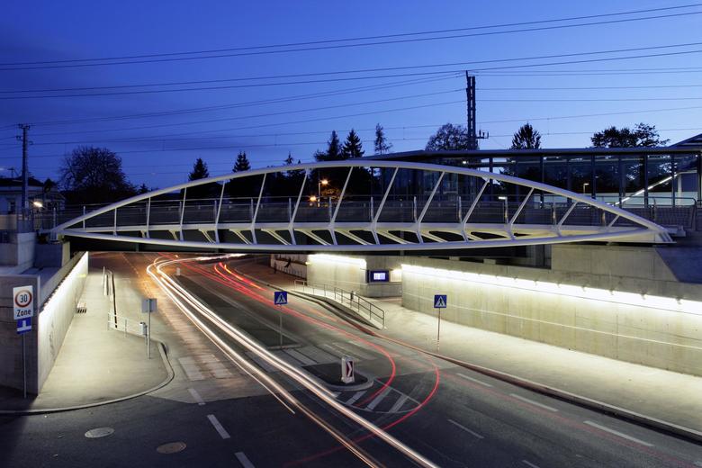 Gleichsam als Stadtportal wirkend, an der Westeinfahrt im 14. Wiener Gemeindebezirk gelegen, stellt diese Brücke ein Symbol für Benutzerfreundlichkeit, Dynamik und Wirtschaftlichkeit dar. Als Fußgängersteg mit einer Spannweite von 30 m konzipiert und parallel zur Eisenbahntrasse gelegen, wurde sie in die Gesamtinfrastruktur einer neu ausgestatteten Station eingebunden und somit in die Umgebung nutzungstechnisch integriert.