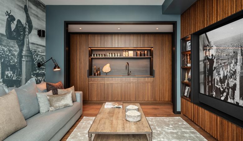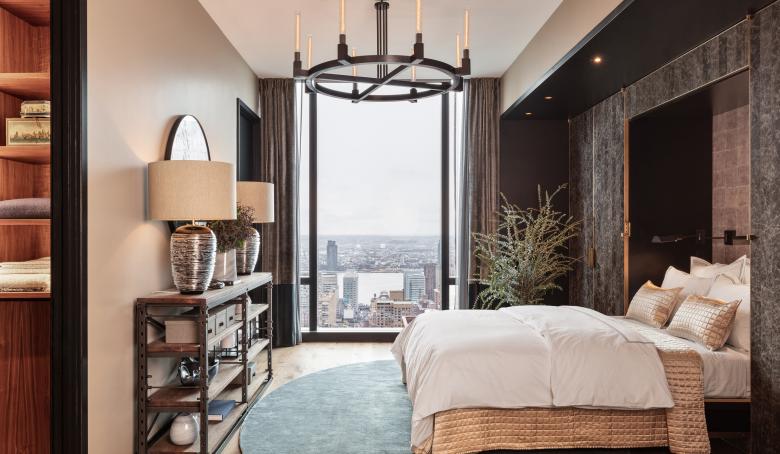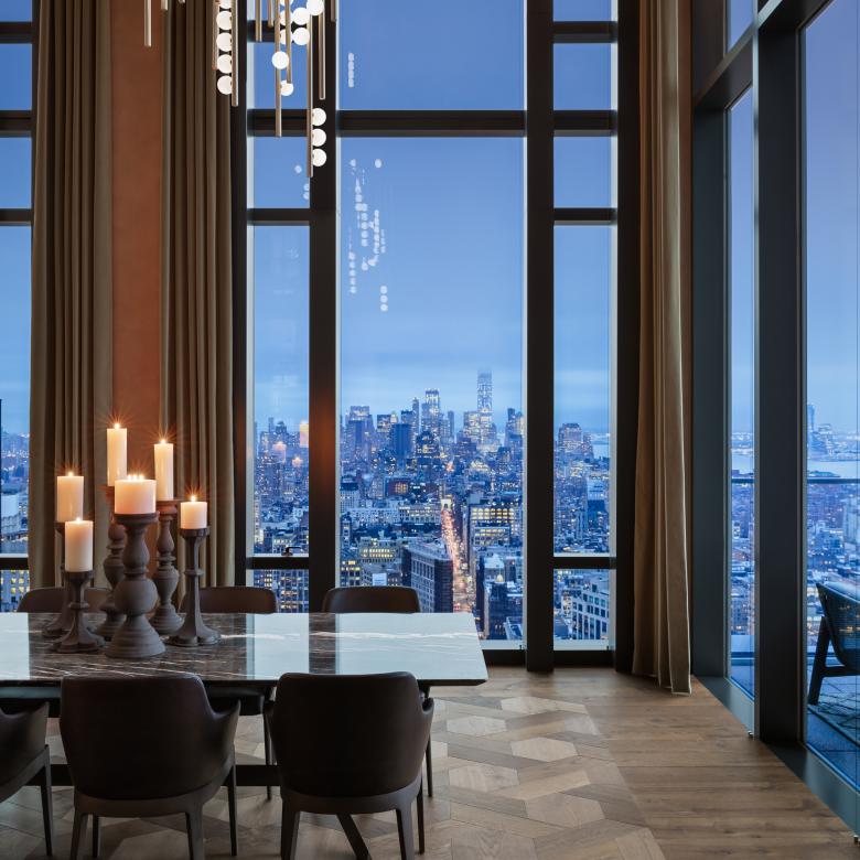 Einen privaten Rückzugsort für Ferienaufenthalte im geschäftigen Manhattan – genau danach suchte das Bauherrenpaar für sich und seine erwachsenen Kinder. Für sie alle entstand im 52. Stock eines neu gebauten Hochhauses an der Fifth Avenue ein Zuhause auf Zeit, in dem das Zusammensein der Familie an allererster Stelle steht. Dafür wurde der Grundriss an die Anforderungen der Bauherrschaft angepasst. Alle Familienmitglieder geniessen bei ihren Aufenthalten in der Stadt die feinfühlige Mischung aus amerikanischer Grosszügigkeit und europäischer Eleganz. Jeder Raum erweist einem anderen Wahrzeichen New Yorks die Ehre – abgestimmt darauf, welche bauliche Ikone durch die raumhohen Fenster des jeweiligen Zimmers zu sehen ist. Unbestrittenes Highlight ist der Living Room mit seiner spektakulären Höhe, in dem sich die unverwechselbare Atmosphäre der Stadt spüren lässt.
