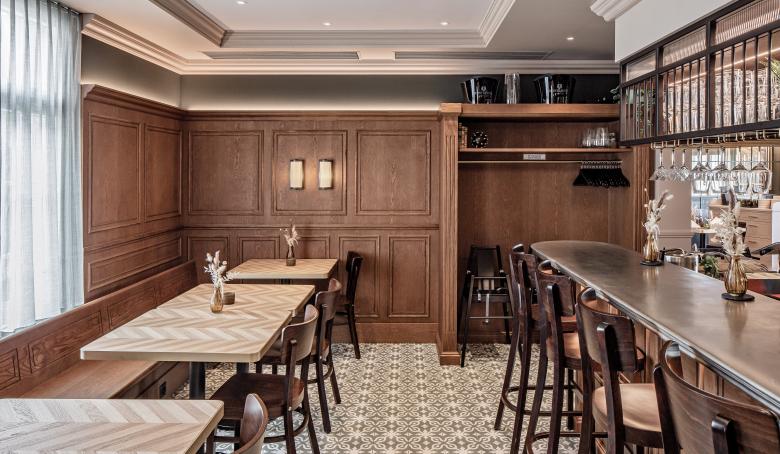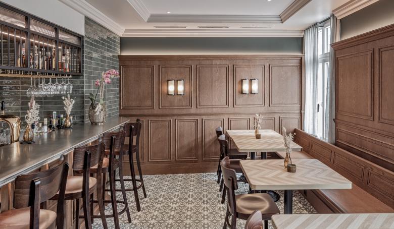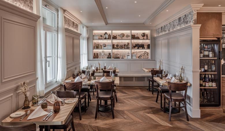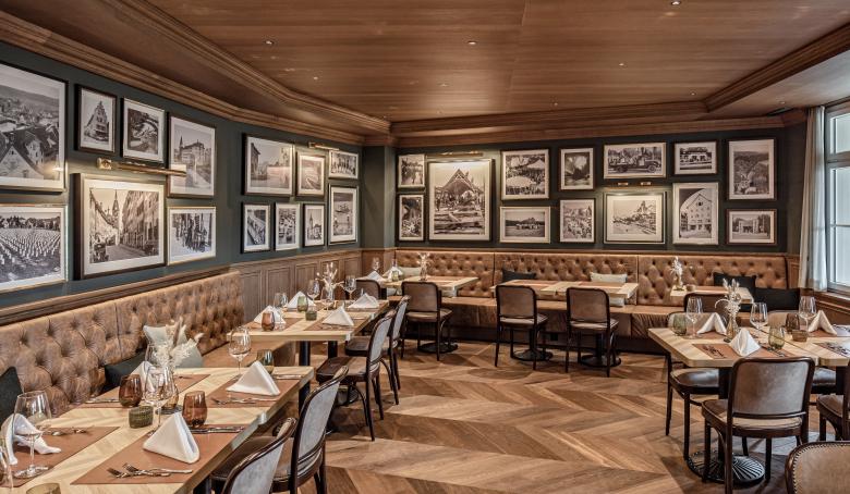 Den «Stadthof» in Bremgarten nahe Zurich nehmen die Menschen vor Ort als lokale Institution wahr; er steht für den Stolz der Bürgerinnen und Bürger auf ihre Stadt. Nach einem Betreiberwechsel sollte dieser Stolz endlich auch im Inneren sichtbar werden: ein authentisches Interior Design – bürgerlich und elegant und dabei doch reduziert und zeitgemäss. Die Geschichte der Stadt wurde dafür zum Kernthema der Räume. Möbel und Einbauten strahlen dank ihrer Materialien und Formen handfeste, gediegene Werte aus. Besonders gut sichtbar wird der Stolz auf den Ort an den Wänden des Restaurants : Aus einem riesigen Fundus an historischen Fotos über Bremgarten wurden 39 Bilder ausgewählt, im Grossformat hochwertig reproduziert und an den Wänden im Saal arrangiert.