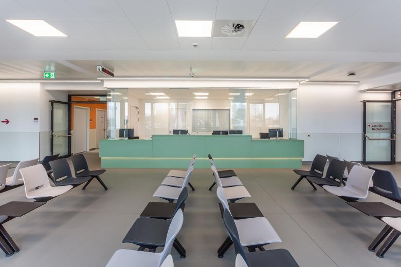 Zentralen Notfallversorgung, einer Kurzliegereinheit, einem CT und einem Röntgenraum, sowie einer Notfallpraxis.