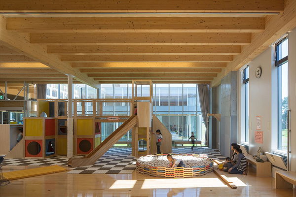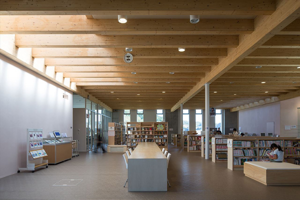 町の中心に計画された、図書、多目的ホール、学童保育、役場機能の一部などが一体になったコミュニティ施設である。周辺にある既存公共施設の足りない部分を補完しつつ施設間のネットワークを緊密にすることで、町全体の公共施設の機能性を高めることがテーマであった。したがってここでは、様々な機能を独立した空間にせず、ひとつの大きな空間の中に連続して配置させることで、世代や目的の違う人々の交流を図った。地場産トドマツによる開放的な木造建築の外周4箇所を、ウチニワと呼ばれる採光空間によって欠き取り、さらに内部では耐震要素となるコンクリートコアを木造モデュールに従って配列した。ウチニワとコアを注意深く分散させることで、様々なスケールや明るさの場所をつくり、そこに相応しい家具を配置しながら人々の活動をレイアウトした。