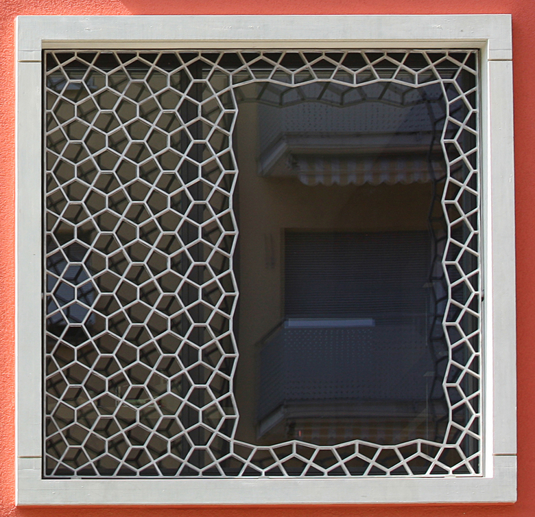 Die Obergeschosse der Strassenfassade werden mit nur einem Fenstermodul bespielt. Die Fassade erlangt dadurch eine wohltuende und grosszügige Masstäblichkeit analog der Nachbarhäuser. Die klassischen Elemente der benachbarten Gebäude werden weiterverwendet: Erker und Materialien wie Naturstein, Putz und kunstvolle, schmiedeiserne Geländer der Balkone werden angewendet. Bei unserem Gebäude zeigen die Erker die Eingänge für die Nutzungen Gewerbe und Wohnen an. Die Gesimse verstärken die Zonierung und die Plastizität des Volumens. Die Gussaluminium-Elemente vor den Fenstern entlang der Strassenfassade dienen neben ihrem Schmuck-Charakter als Absturzsicherheit.