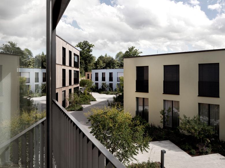 Trotz der freien Form gliedern sich Riegel und Punkthäuser in einem strickten Raster. Aufgrund der Effizienz der sich wiederholenden Grundrissgestaltung und einer vielfältigen Aussenraumgestaltung bietet die Siedlung 70 kostengünstige Genossenschaft-Wohnungen an.