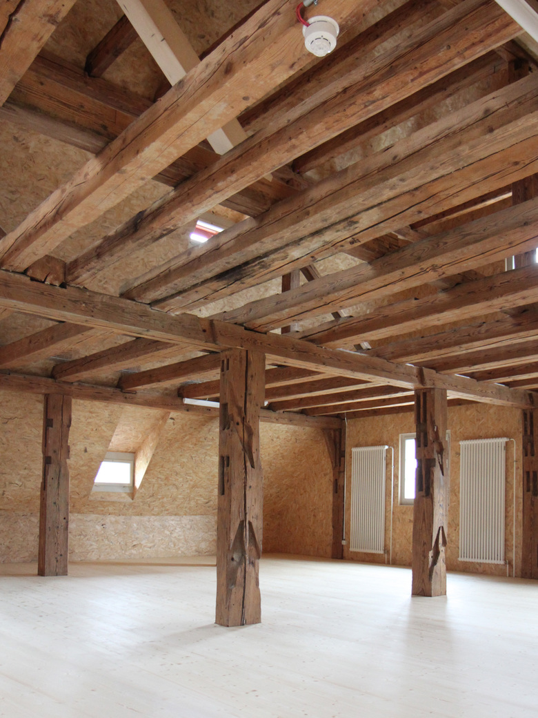 Aufgrund ihrer historischen Bedeutung, ihres stattlichen Erscheinungsbildes sowie ihrer vielseitigen räumlichen Möglichkeiten wird die ehemalige Papiermühle der Öffentlichkeit zugänglich gemacht und zu einem lebendigen Treffpunkt für die Bevölkerung der angrenzenden Wohnquartiere umgestaltet. Die architektonischen Eingriffe konzentrieren sich weitgehend auf den Erhalt der historisch schützenswerten Bausubstanz und die Stärkung der bestehenden räumlichen Qualitäten. Die 1604 erbaute Mühle bleibt in ihrem bestehenden Volumen weitgehend erhalten. Im Innern entstehen durch die Entfernung der Wohnungstrennwände aus den 1950er Jahren und der Freilegung der historischen Haupttragstruktur überraschend grosszügige Räume. Mit der Aufhebung des Estrichgeschosses wird die Ambiance des ehemaligen Trocknungsraumes im Dachgeschoss wiederhergestellt. Die charakteristische kaskadierende Treppe bleibt dabei weiterhin Haupterschliessung und Rückgrat des Hauses. Minimale Eingriffe in die Gebäudestruktur, objektverträgliche Nutzungen sowie ein einfacher Ausbaustandard ermöglichen ein sinnvolles Kosten-Nutzen-Verhältnis.