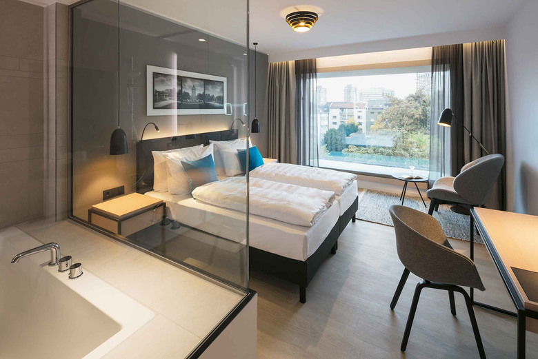 Der Gast genießt die gewohnt hohen Standards der weltweit führenden Hotelmarke und profitiert gleichzeitig von einer sehr individuellen Inszenierung, die den Aufenthalt unvergesslich macht. 229 Zimmer inklusive 13 Longstay-Apartments mit Kitchenette, sechs Juniorsuiten, drei Suiten und eine Präsidentensuite verteilen sich auf den Etagen drei, vier und fünf. Die Gestaltung folgt der Trinität von Urbanität – Kunst – Natur. Das Farbspektrum etwa greift auf Naturtöne mit wenigen kräftigen Farbakzenten zurück. Die Verwendung von Schwarzrohrstahl – beispielsweise bei der Gestaltung des Sekretärs – verweist auf den Industriestandort Mannheim. Und großformatige Fotografien zeigen die Sicht eines Mannheimer Künstlers auf seine Heimatstadt.