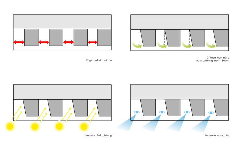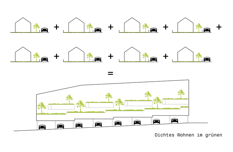Daher ist die qualitätsvolle Verdichtung eine zentrale Strategie, um die durch die Zersiedelung entstehenden Nachteile zu korrigieren. Ziel war es, Wohngebäude zu errichten, welche eine hohe Wohndichte aufweisen, aber die Wohnqualität des Einfamilienhauses mit Garten und Garage nicht verlieren.