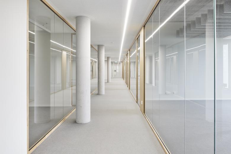 Das Projekt befindet sich im Spannungsfeld zwischen der Hochtechnologie, die das Unternehmen repräsentiert, und einer einladenden und patientenfreundlichen Atmosphäre. Daher sind die Räume unter Bewahrung von Diskretion hell und offen gestaltet. Die warme Materialisierung, Farbigkeit und Haptik ermöglicht die Zugewandtheit zu Patienten und Mitarbeitern.