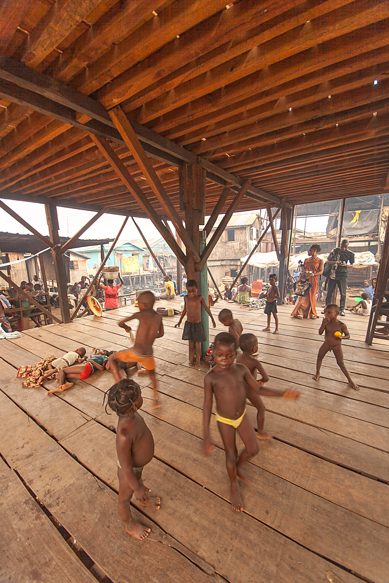From 2013 to 2017, FABULOUS URBAN developed and implemented the Makoko Neighborhood Hotspot as part of the Makoko Urban Design Toolbox and the Makoko/Iwaya Waterfront Regeneration Plan. The Makoko Neighborhood Hotspot was designed as a technical and social infrastructure for one of Lagos' best-known urban slum settlement that is Makoko. It serves as an infrastructure hub providing urban services such as biogas linked community toilets and as a business incubator promoting waste-to-energy principles. Last but not least, its purpose is to serve at large as a community empowerment tool and learning center. The Hotspot represents more of a concept than a project even though the architectural design aspect was carefully and ambitiously developed. Its conceptualization and building phases confronted the poor underserved Makoko communities with a series of tough and difficult decision-making processes. After the completion of the structure and its inauguration in December 2015 the second project phase led in 2016 to the formation of the “Makoko Neighborhood Hotspot Multipurpose Cooperative Society Limited”, officially registered at the Lagos State Department of Cooperatives. It serves as the operational and administrative body of the Hotspot with its 20 members and a 7-strong management committee, compromising positions of the president, the secretary, and the treasurer, among others. One of the key tasks of the committee is the hiring, payment and supervision of employees. For this purpose, three business plans were drafted to ensure the sustainable set-up and long-term operation of the envisioned Hotspot activities. The implemented business activities – biogas-linked community toilets, biogas production, water treatment, and farming pipes – provide since December 2017, the end of the third project phase, the badly needed infrastructure for roughly 200 people. During the pilot phase, 10 families will receive cooking gas to be refilled at the Hotpot with specifically designed biogas rucksacks. As a business incubator, the Hotspot serves as pilot or prototype approach that could and should be replicated in other parts of the community and in other slum/ low-income settlements in Lagos State. One of the long-term goals of the Neighborhood Hotspot initiative is to inspire the government on how the dramatic lack of infrastructure in many communities and within large parts of the population could be approached, namely with the implemented decentralized strategic yet low-cost interventions.