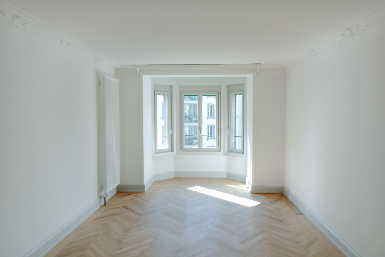 Das Haus an der Moosstrasse 19 wurde 1907 als Teil eines Mietshofgevierts von F.E. Japke und Felder & Cie. erbaut und liegt an prominenter Lage im Neustadtquartier. Alle wesentlichen Fassadenelemente sind in ihrem Ursprung erhalten. Allerdings war der Ausdruck des Gebäudes im Verlauf der Jahre durch verschiedene Sanierungen und Farbveränderungen verunklärt worden. Mit dem Umbau nutzten wir die Chance, das Ursprüngliche, das Einzigartige und den Charme dieses Gebäudes wieder ans Tageslicht zu bringen und den Originalzustand so weit als möglich wiederherzustellen. Im Inneren standen die sanfte Sanierung des Bestands, die Integration des neuen Aufzuges und der Einbau von zwei zusätzlichen Wohnung unter dem Dach im Fokus.