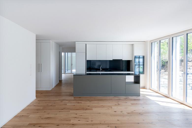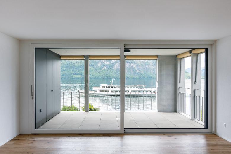 Zur Struktur der Wohnungen: Die gemeinschafltichen Räume richten sich gegen das Berg- und Seepanorama im Süden. Die Zimmer sind überwiegend im hinteren Bereich des Gebäudes angelegt und öffnen sich zur vielfältigen Umgebung.