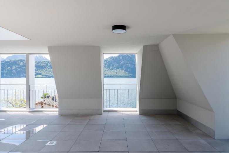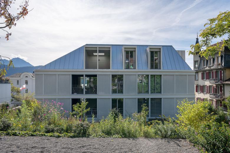 Die Seepromenade von Weggis ist geprägt von den repräsentativen Hotelbauten, welche zu Beginn des 20. Jahrhunderts erstellt wurden. Die herrschaftlichen und tektonisch aufgeladenen Gebäude bilden eine dichte urbane Struktur und stehen im Gegensatz zum angrenzenden Wohnquartier, mit seinen verstreuten, solitären Bauten. Volumetrisch ist der Entwurf als ein einzelnes Punktgebäude ausformuliert und gliedert sich selbstverständlich in die umgebenden Solitärkörper ein. Der Neubau hat eine selbstbewusste Präsenz, hält sich dezent zurück und reagiert angemessen auf den Bestand.