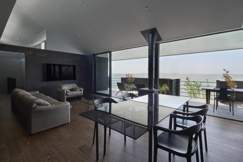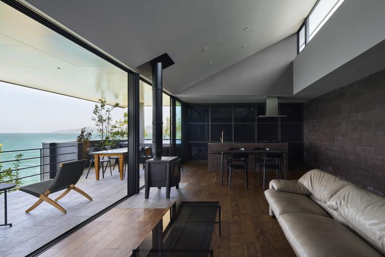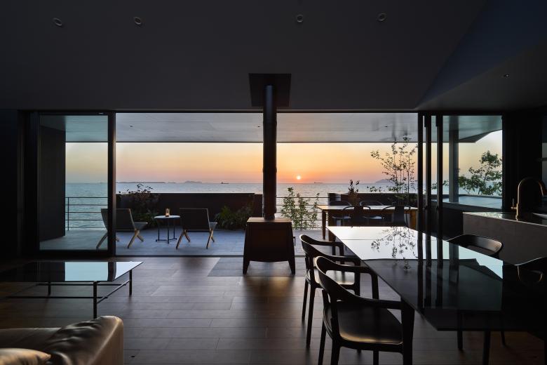 A house built along the Sea of Japan. The sunset from the site is beautiful, and the client wanted a house to incorporate the sea and the sunset into their lives.