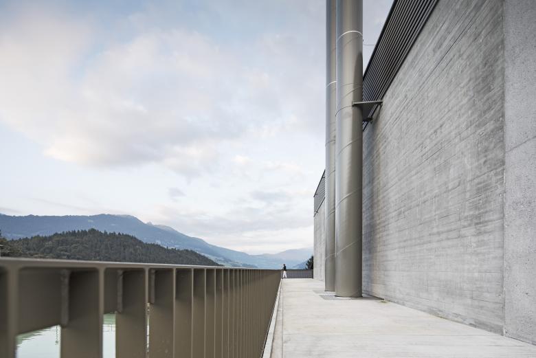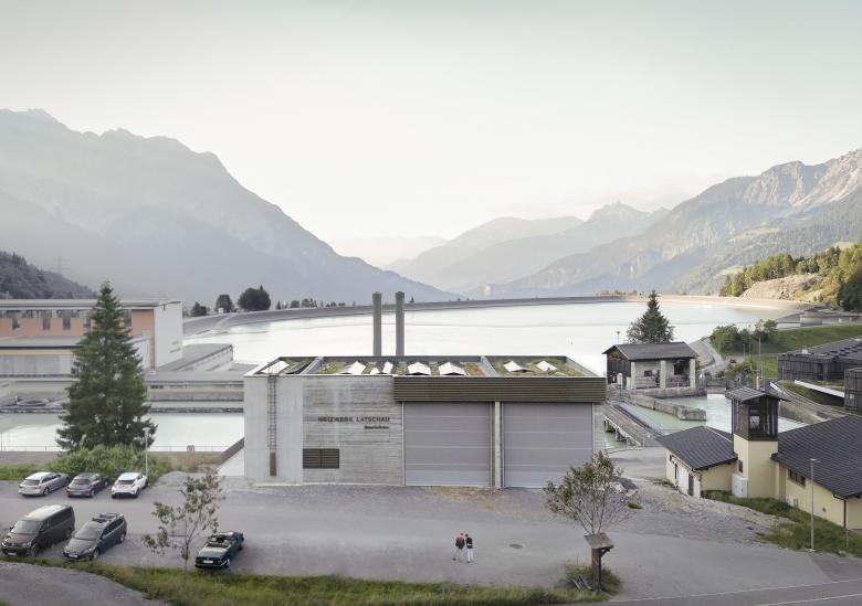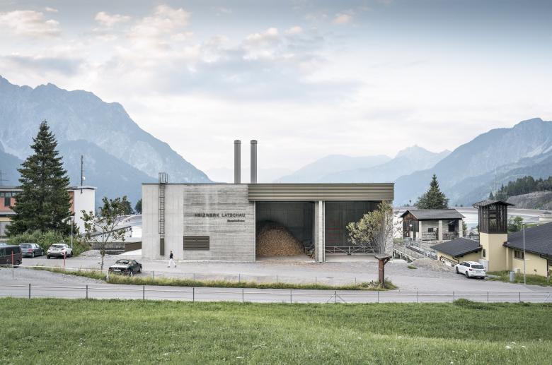 Bauen in den Alpen, innerhalb der mächtigen Kulisse der Montafoner Bergwelt, bedeutete im Fall des Heizwerks Latschau, die Material- und Farbwahl so auszurichten, dass sich das Gebäude in die umgebende Landschaft fügt. Die elegante Monotonie der Berge spiegelt sich in der Ausformulierung des Heizwerkes wider. Ein massiver und durch unterschiedliche Oberflächenstrukturen gegliederter Betonkörper und eine einzige Schmuckfarbe für sämtliche Metalloberflächen greifen die umliegende Atmosphäre auf und tragen sie weiter. Ein engagiertes Ökologiekonzept verschränkt das Gebäude weiter mit dem Umfeld, indem das Gebäude selbst zum Habitat für standorttypische botanische Raritäten wird.