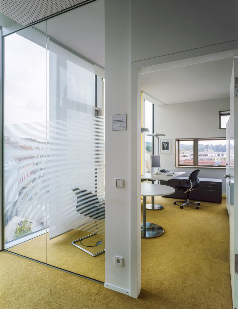 Alle Nutzräume sind prinzipiell um den Erschließungskern mit Flurzone angeordnet. Über den separaten Zugang lassen sich die Bürogeschosse auch einzeln vermieten. Innerhalb lassen sie sich mit leichten Trennwänden flexibel aufteilen. Die tragende Konstruktion (Decken, Wände, Stützen) sind in Stahlbeton mit wirtschaftlichen Spannweiten ausgeführt. Die Aussteifung erfolgt über den Treppenhauskern und tragende Außenwandscheiben. Die Stahlbetonmassivdecken tragen ihre Lasten auf die Innenwände im Treppenhaus und Aufzug sowie die Außenwände ab.