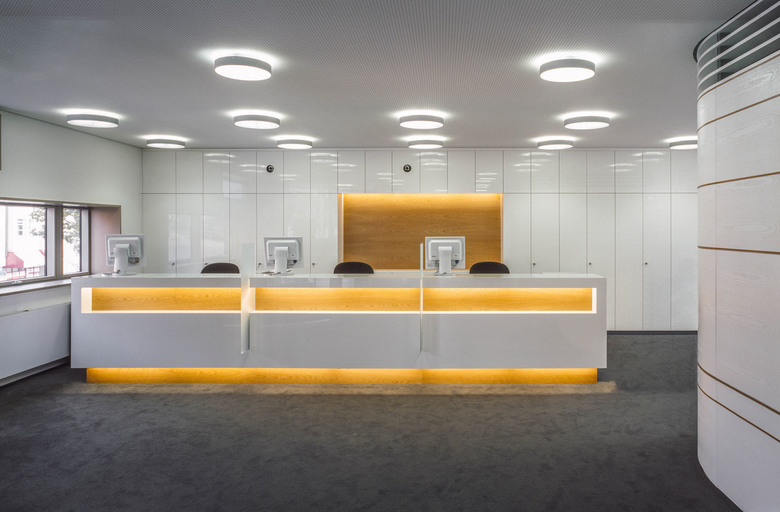 Das Gebäude wird über Eck erschlossen. Im Erdgeschoss liegen das Foyer mit den Geldautomaten und die Kundenhalle mit den Serviceplätzen. Über einen behindertengerechten Aufzug bzw. Treppenhaus gelangt man in alle Geschosse. Weitestgehend sind dort Büros, Besprechungsräume und Räume zur Kundenberatung angeordnet.