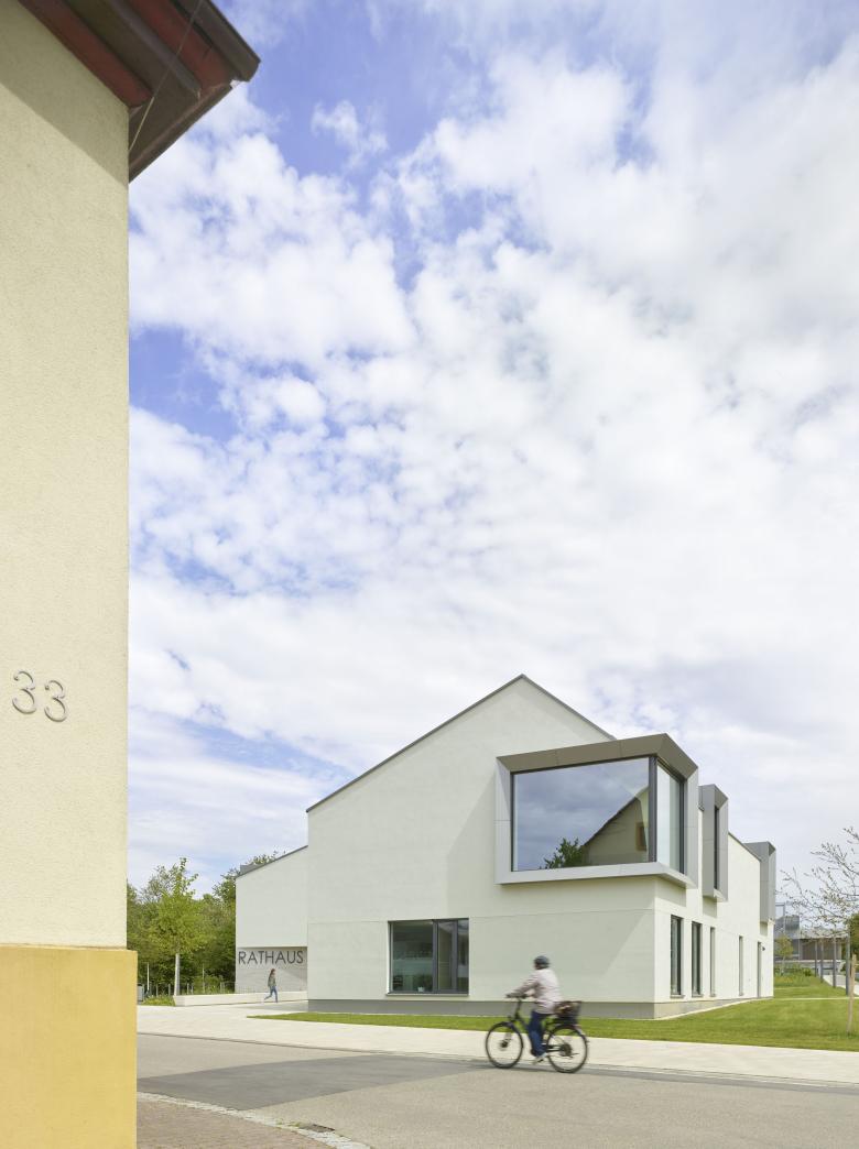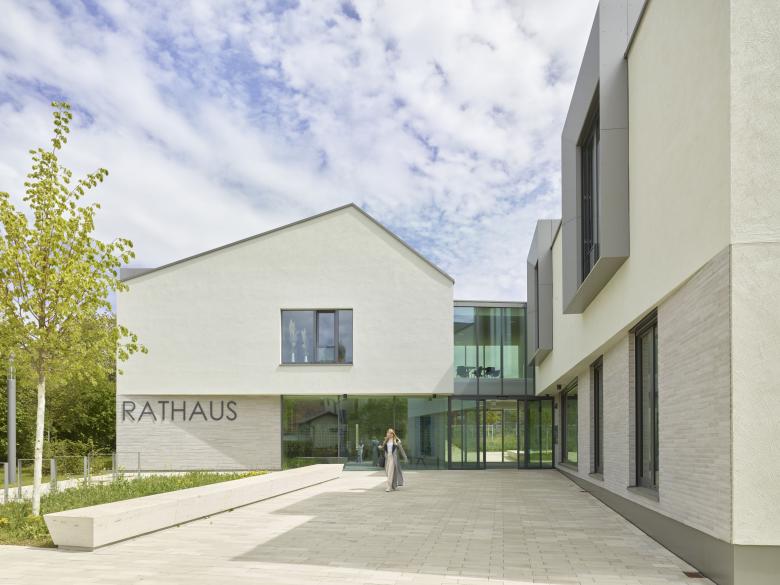 Mit der Lage zwischen Schulkomplex und Altstadt schafft das neue Rathaus eine Überleitung zwischen dem historischen Zentrum und den großen öffentlichen Strukturen im Norden und Osten. Durch die Gliederung in Riegel in Nord-Süd-Richtung entsteht eine Durchlässigkeit zwischen den älteren und neueren baulichen Strukturen. Über einen kleinen Vorplatz wird das Vorfeld zwischen Rathaus und Straße definiert. Der Platz lädt ein zum Verweilen und ermöglicht ebenso kleinere Veranstaltungen im Freien.