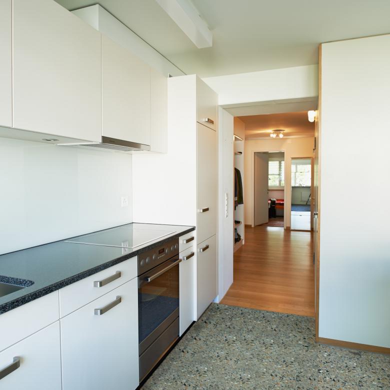 Die zu kleinen Küchen wurden mit neuen in Vorfabrikationstechnik erstellten und dem Gebäude über neun Stockwerke vorgesetzten Raumzellen erweitert. Die Wände für die neuen Bäder wurden in Elementen werkseitig erstellt und in der Wohnung am Ort der bisherigen Küche aufgerichtet.