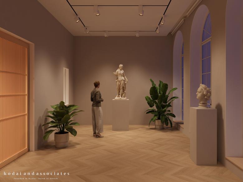 A gallery uniting “knowledge,” “artwork,” and “exhibition” in masterpiece arts layered within a Grade II listed building. A transitional walkway guides visitors through the vast collection of the art library, the office, and the main gallery, where arched windows frame sculptures facing the street. Art and history converge in a space that invites both visitors and passersby into a quietly timeless atmosphere.