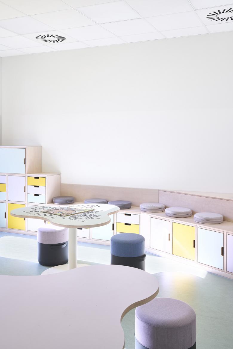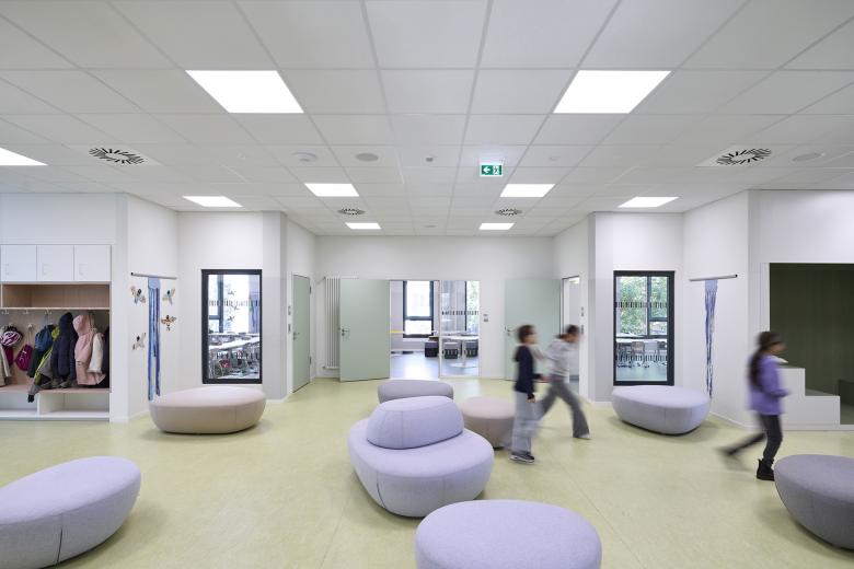 Die Neubauten werden durch Angleichung der Außenanlagen und die Farbgestaltung der Fassaden behutsam in das jeweilige Schulgelände eingebunden. Die effiziente und elementierte Bauweise erlaubt eine vergleichsweise kurze Bauzeit – bei laufendem Schulbetrieb. Helle und freundliche Raumatmosphären, sowie lernunterstützende Farbkonzepte und hochmoderne technische Ausstattung mit Nachtauskühlung im Sommer und optimaler Tageslichtnutzung, solarer Wärmegewinnung und Außenverschattung sorgen für flexible und effiziente Bildungsgebäude und zukunftsfähige Räume für die Schülerinnen und Schüler.