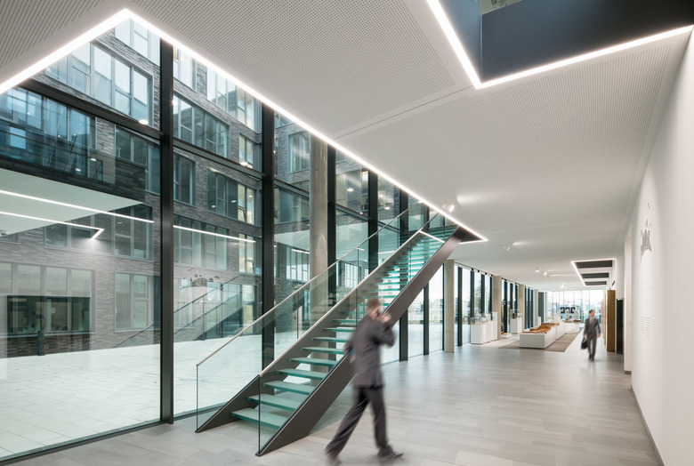 In den flexibel gestaltbaren Arbeitswelten und Bürolandschaften wird so – bei guter natürlicher Belichtung – ein offenes und lebendiges Raumgefühl geschaffen, welches Zusammenhalt und Identität vermittelt.