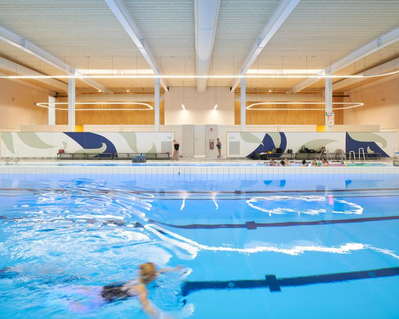 Der Entwurf basiert auf dem von slangen + koenis architecten und dem königlich niederländischen Schwimmbund (KNZB) entwickelten 2521 Konzept. 2521 steht für ein zentral liegendes Sportschwimmbecken mit einer Länge von 25 m und einer Breite von 21 m, um das die dienenden Funktionen wie Umkleiden und Duschen angeordnet sind. Um das Bad flexibel nutzen zu können, gibt es einen Hubboden und das Becken lässt sich abteilen. Die Idee dahinter ist eine bessere Verteilung der Wasserzeit, um die Halle optimal auszulasten. Um Kosten zu sparen, wurde ohne Keller und mit einem hohen Grad an Vorfertigung gebaut.