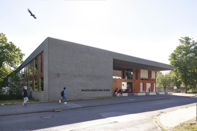 Ziel des ersten Bauabschnittes war es, die heterogene Struktur des Schulgeländes neu zu ordnen und zu einer funktionierenden Gesamtanlage zusammen zu führen. Durch die Anordnung der Gebäudeteile gelang es unter Einhaltung des Gesamtbudgets zusätzlich eine multifunktionale Aula für 300 Personen zu schaffen, die insbesondere auch im außerschulischen Bereich für den Stadtteil benötigt wurde.