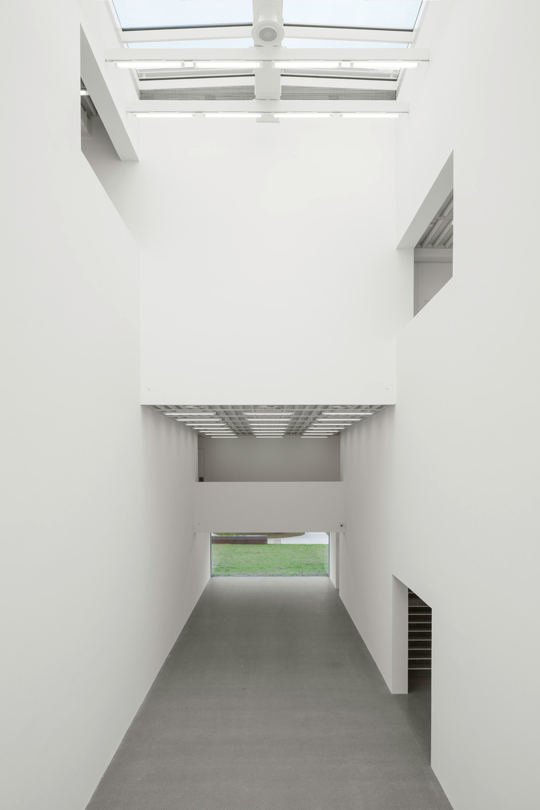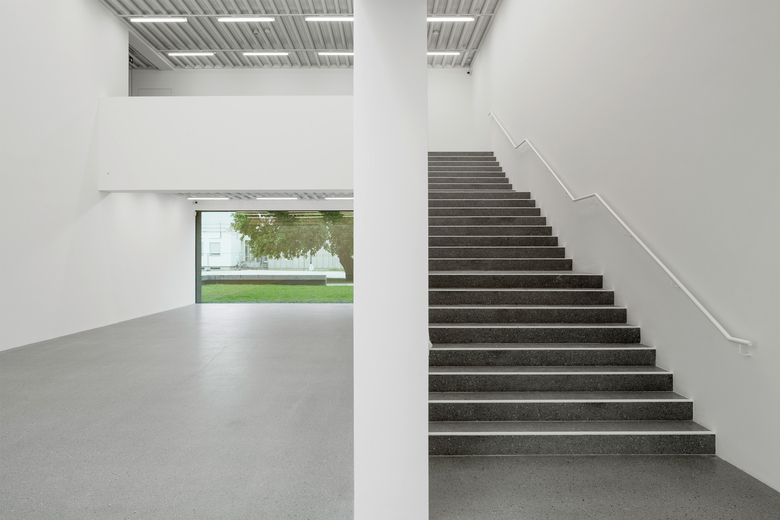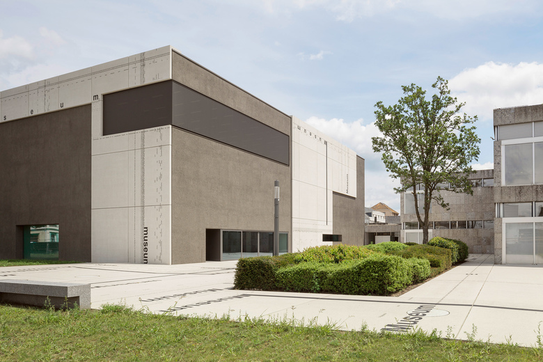 Although the brief was limited to the facade, Kuehn Malvezzi and Riedel extended the project to the open space around the Moderne Galerie. They studied the grid of Hanns Schönecker’s modernist plan, and turned it into a continuous, paved surface that holds together the galleries and the sculpture garden. The facade of the new building is then created simply by cutting and folding the surface around its walls.