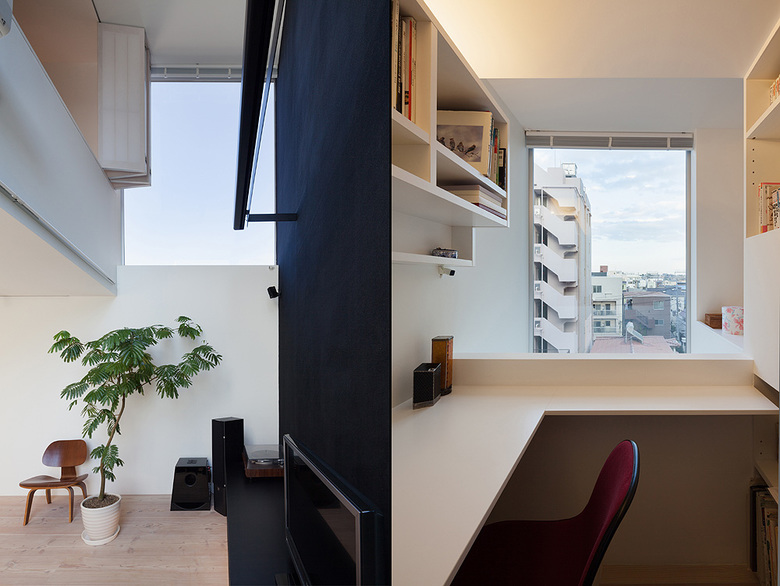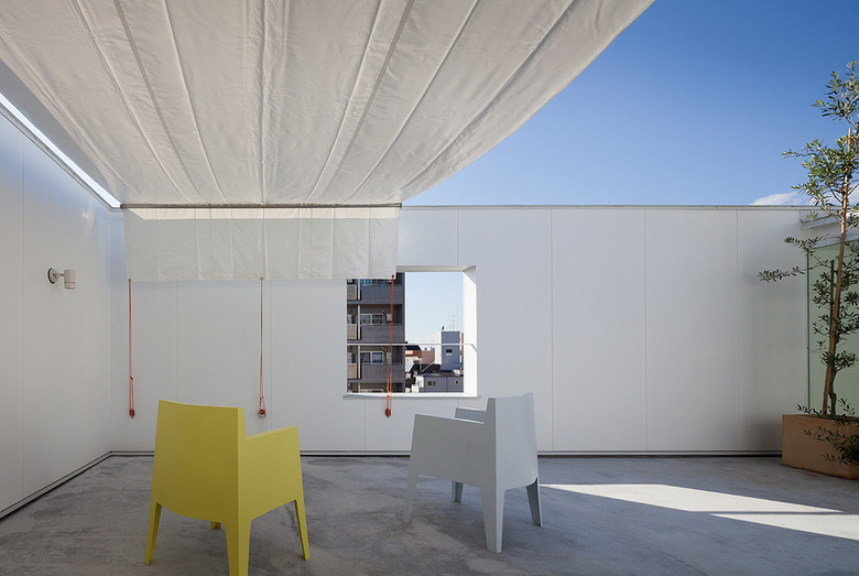 To reduce noise and vibration from the road in front of the building and to prevent flooding, which is common in this area, the lower level is a RC structure, and on top of that are three levels of residential space with a steel panel structure that allows for flexible planning and thin walls, plus a rooftop.