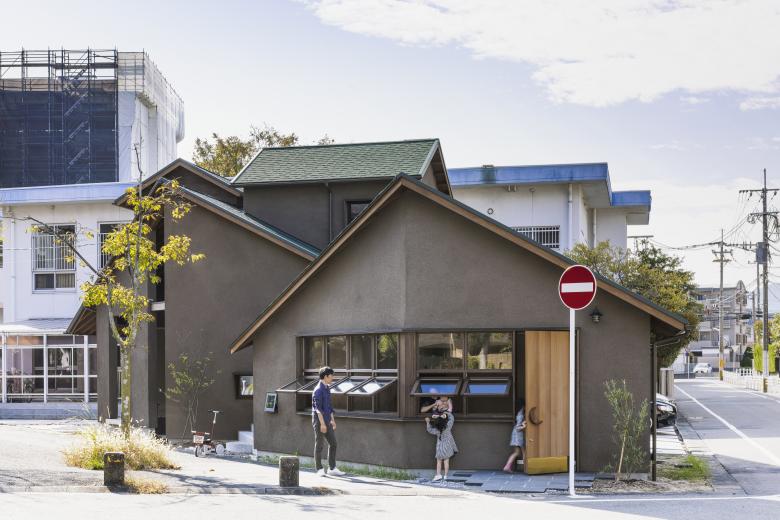 実はそもそも西側の駐車スペースは自家用ではなく、隣接する保育園の送迎用に無償で使ってもらために計画しました。貸し店舗もコロナ禍や震災のように再び突然の社会の変化が訪れた際には、街に貢献できるスペースへと転用可能です。完成してみると近隣の街や社会にも余白を差し出し、貢献することのできるるようなこの建築の佇まいや在り方は、まるで建主の人柄を表現しているかのようだなと思います。道ゆく人や子供達が気軽にこの屋根の下で道くさしたくなるようなそんな風景。家と街のあいだに。