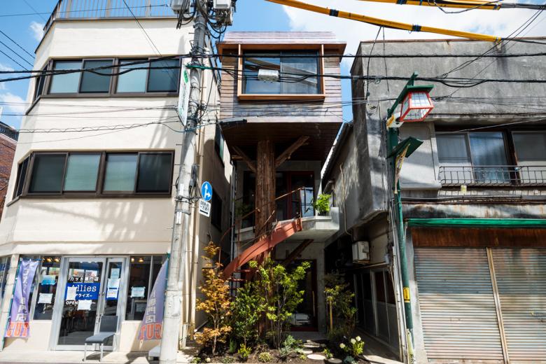 商店街という環境をよりワイルドに敷地に巻き込み、都市を森と見立てたツリーハウスのような建築になる事を目指した住宅です。