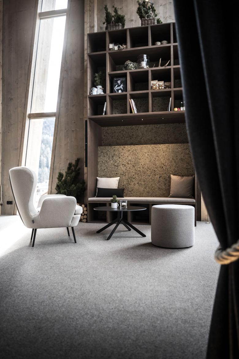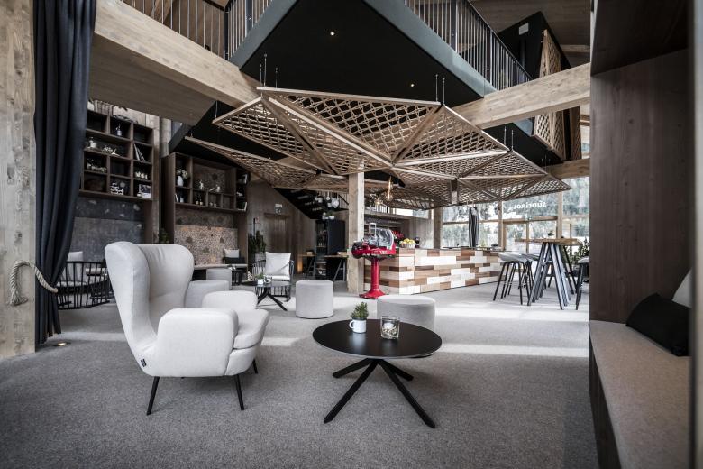 The initial idea of the design stems from the traditional card game “Watten” (card game), in which symbols of leaves, acorns, bells and hearts characterise the main roleplayers. These four represent the conceptual guidelines that pervade all areas of the interior. The leaf stands for the natural and cultural landscape, the acorn symbolizes the way of life and the quality products, the bell in turn indicates opening and innovation and finally the heart expresses conviviality, hospitality but also tradition and association. All of these elements correspond to the nature of South Tyrol and can be seen in a variety of precise creations.