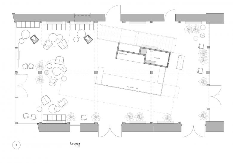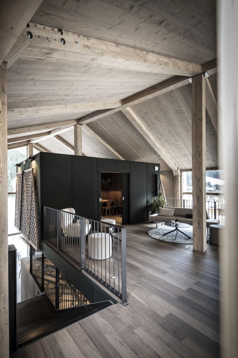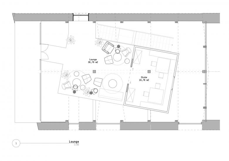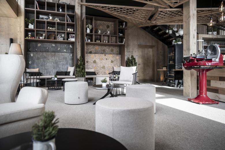 The two floors, which are used for different functions, can basically be summed-up in one term: “Mit´nond” (being together) – a claim that indicates the importance of community in South Tyrol, whether in cooking, eating, celebrating, playing cards or through merely exchanging ideas and stories. At every corner this idea comes through and creates places where a little round table feeling can arise. The table per se - of course in the most varied of forms - is the central element where warmth, the joy of life and entertainment meet.