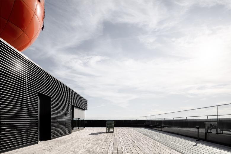 Environmentally friendly materials were used for the conversion and construction of the new Atlas tower, and the architecture and interior were optimized from an economic and ecological perspective. The tower's interior was generously designed with flexible floor plans in the spirit of New Work. The two-storey underground car park holds 230 parking spaces and the grounds have 100 bicycle parking spaces. The orange plastic sphere on the roof of the Atlas Tower, taken over from the existing building, is illuminated at night and shines over the Werksviertel. The Atlas high-rise and the plaza building will be used for offices, while some areas will be used for catering facilities for the users.