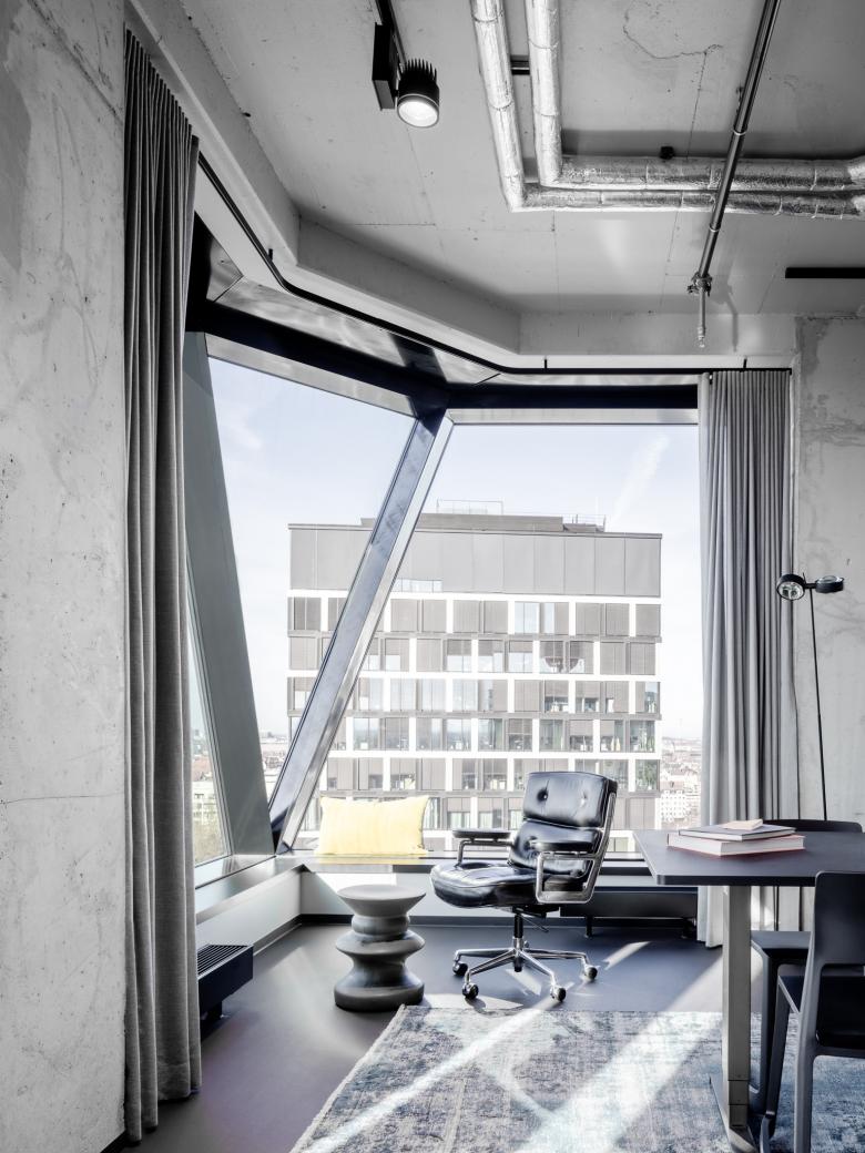 We dismantled the tower down to the supporting structure, and the adjacent high-rise garage gave way to a five-storey plaza building facing Rosenheimer Strasse and a four-storey plaza building facing the Werksviertel, into which the tower was embedded. This created two inner courtyards and six terraces of different sizes.