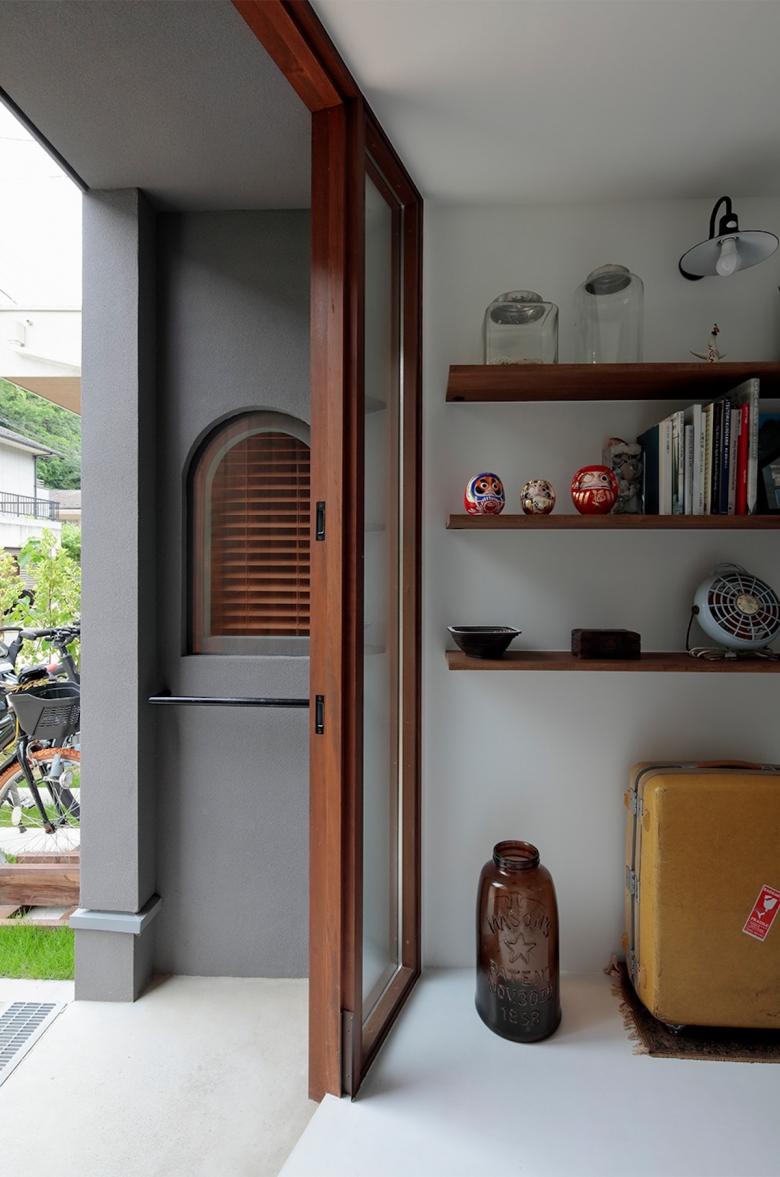 この小さな住宅は1冊のスクラップブックから始まりました。小さいスペースでも良いからたくさんの部屋が欲しい。 そこで過ごす自分だけのお気に入りの時間が過ごせる豊かさが求められていました。この個性的な小さな居場所での出来事が、クライアントの要望であるアーチの空間を活かして、生活の中で流れるように場面展開されていく構成としました。