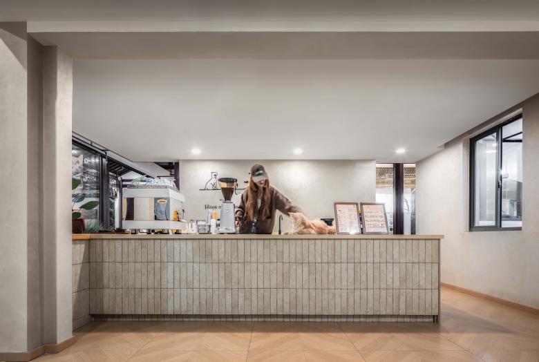 The main business area is situated on the second floor, while the narrow ground-level entrance poses inherent challenges such as low commercial visibility and difficulty in guiding customer flow. The core objective is to overcome the limitations of having the primary space upstairs and achieve effective customer attraction. The designers turned this constraint into an advantage by transforming the compact first floor into a boutique retail zone featuring signature cultural and creative products and pet supplies. This not only enables preliminary customer filtering but also naturally directs visitors to the upper level.