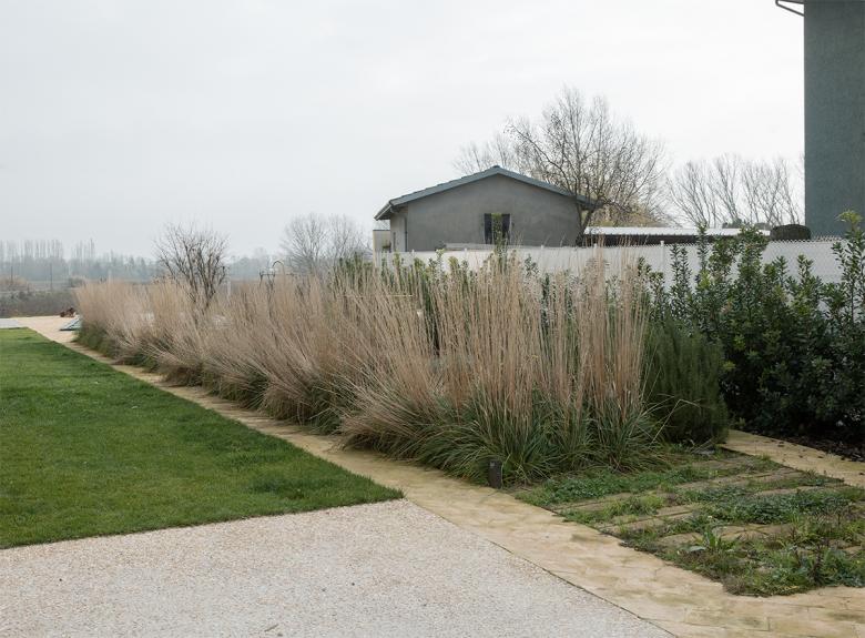 L’orto-giardino presenta una struttura simile a quella dei tradizionali orti e giardini dei semplici. Il progetto ha definito le specie nei settori di cornice, mentre la parte centrale, propriamente ad orto, viene realizzata e coltivata direttamente dai proprietari, secondo una filosofia progettuale che intende da un lato conferire chiara caratterizzazione compositiva all’insieme e dall’altro lasciare spazio alla personalizzazione e flessibilità d’uso.