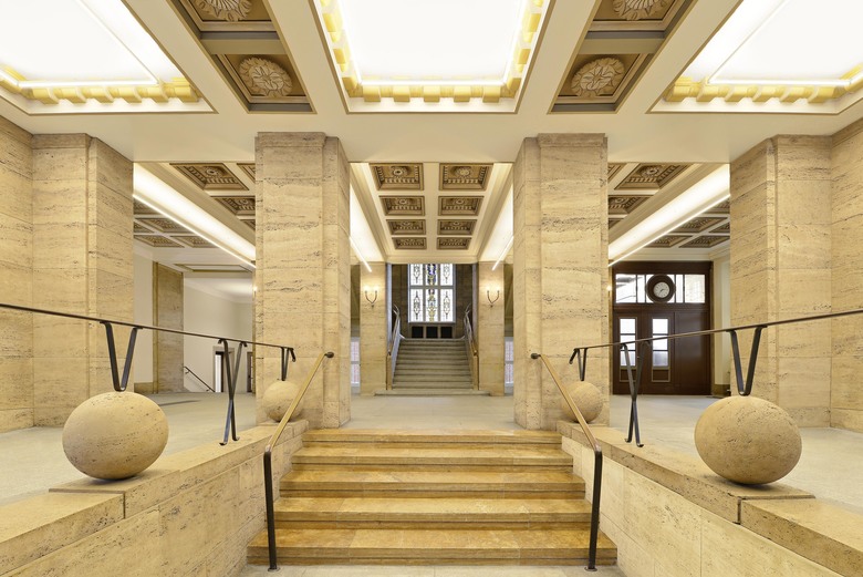 angebracht. Durch die energetische Sanierung der Gebäudehülle und der technischen Gewerke wurde die Energiebilanz des Hauses wesentlich verbessert (Einsparungen bis zu 40 %) und eine wirtschaftlicherer Betrieb ermöglicht. Auf die Gestaltung der Barrierefreiheit wurde besonders großer Wert gelegt (Hubaufzug, taktile Leitlinien, Brailleschrift etc.).