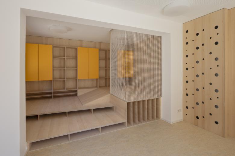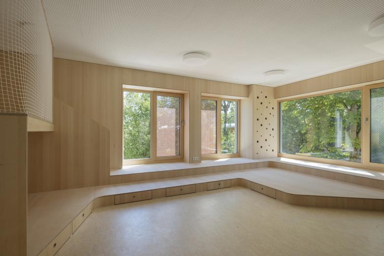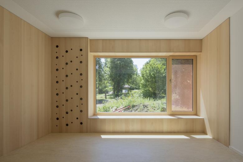 Der Kindergarten ist generalsaniert. Die Innenausbauten wurden liebevoll und kinngerecht geplant. Holz vermittelt eine warme und behütete Atmosphäre. Die Spielelemente bieten den Kindern vielfältige Spielangebote.