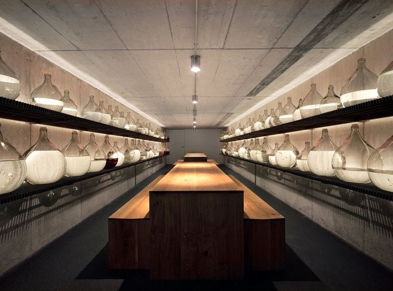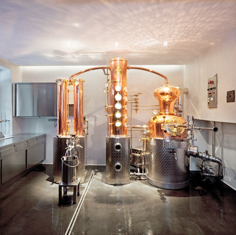 Der Kunde Stählemühle beauftragte den Umbau eines alten Mühlengutes zu einer hochwertigen Brennerei für preisgekrönte Liköre. Der Umbau umfasste auf 143 m² die Brennerei, die Degustations- und Verkostungsfläche des Anwesens. Das Design stellt traditionelle Materialien in einen modernen Kontext, während das Hauptaugenmerk auf der Schaffung eines Präsentations- und Verkaufsbereichs für die Brennereiprodukte liegt. Sichtbetonwände und roher Asphaltboden wurden als Kontrast zum polierten Finish der Brennereimaschine spezifiziert. Die Glasbehälter der Liköre wirken als Linsen und vergrößern die Textur der Sichtbetonwände. Alle spezifizierten Möbel wurden von e15 geliefert, wobei die einige Kernstücke speziell für dieses Projekt angefertigt wurden.