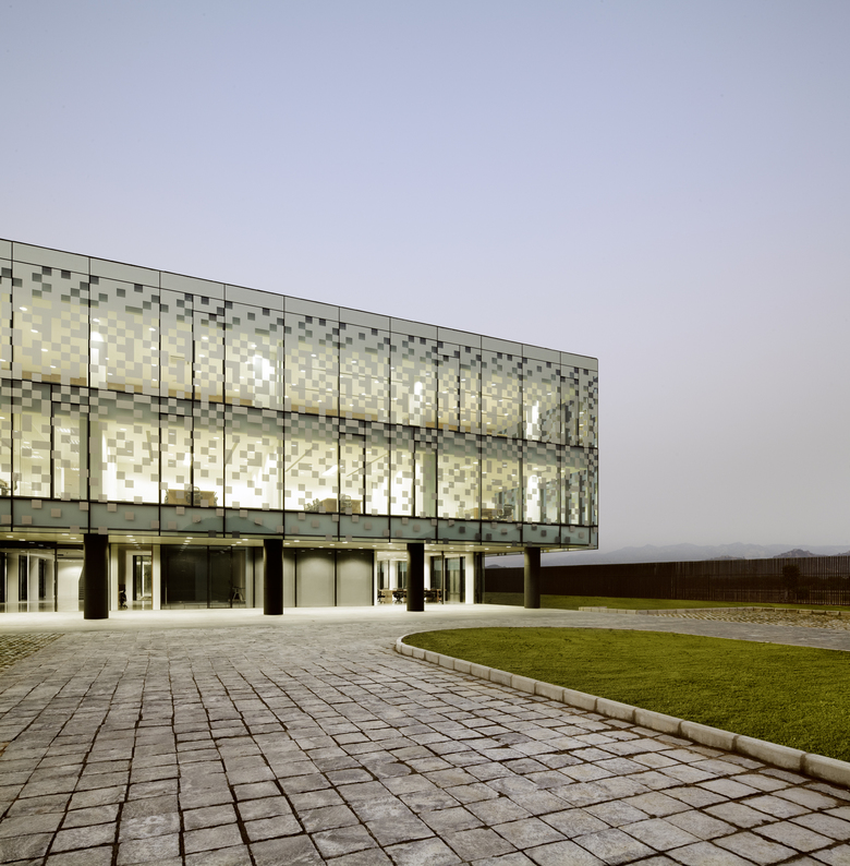 Für den neuen Firmensitz für Taiwans größten Glashersteller Taiwan Glass in Fujian (China), wurde ein 4.200 m² großes Bürogebäude, vom Kunden beauftragt. Es wurde ein dreistöckiges Gebäude errichtet, in dem die Büros, die Verwaltung, der Ausstellungsraum, die Restaurants sowie die Wohnungen für die Geschäftsführer des Unternehmens untergebracht sind, sowie verbundene Gebäude wie das Torhaus und ein Betriebsgebäude. Der allgemeine Grundriss des Gebäudes ist um zwei große Innenhöfe herum strukturiert, die viel Tageslicht zuließen und ein sehr komfortables Arbeitsumfeld schaffen. Zusammen mit Taiwan Glass wurde ein teilweise beschichtetes Low-E-Glas entwickelt, das speziell für die Fassade des neuen Bürogebäudes in Fujian hergestellt wurde. Die beschichteten Bereiche des Glases sind von außen hochglanzpoliert, bleiben jedoch von innen transparent. Das Ergebnis ist eine Glasfassade, die den erforderlichen Schutz vor Sonne und Hitze bietet und ein ästhetisch interessantes Erscheinungsbild erzeugt.