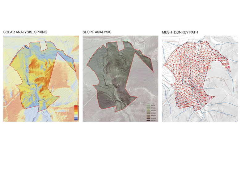 Given the steep topography of the terrain and the intention to stitch together the new buildings with the landscape, the task was to develop the massing as an artificial, jagged replication of the original hillscapes.