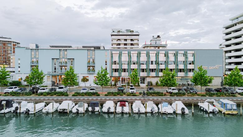 The street-facing facades of Hotel Savoy are being transformed into a rhythmic, green structure of curved steel. This new outer layer creates private outdoor spaces while filtering light, noise, and views. In doing so, the hotel becomes more deeply integrated into the urban context, and the architecture emerges as a breathing threshold between city, landscape, and hospitality.