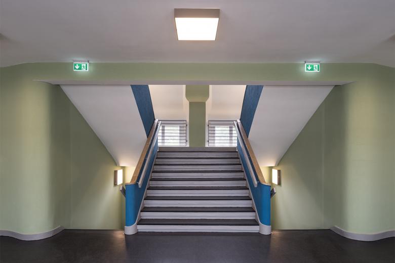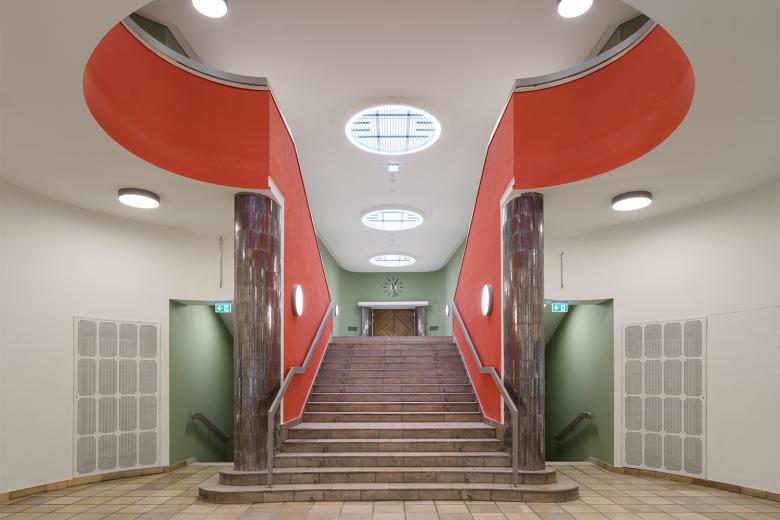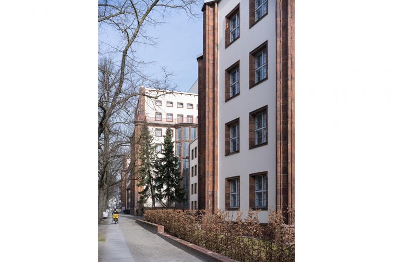 Im Zentrum steht die Frage, wie modern dürfen denkmalgeschützte Umbauten sein, ohne die Geschichte außer Acht zu lassen? So erhält der Entwurf von BFA einerseits die prägnante Außengestaltung und die großzügigen Treppenhäuser dieses relevanten Werks des Berliner Expressionismus. Die ursprünglichen Raumhöhen werden freigelegt, der umliegende Park historisch wiederhergestellt. Anderseits setzt BFA im Inneren die ideale Atmosphäre für zeitgemäßes Arbeiten um: Großräumige Open-Space-Flächen werden mit gläsernen Büros kombiniert, die markanten Eckzimmer sind die neuen Konferenzräume. Die ursprüngliche industrielle Bauweise fügt sich so mit neuzeitlichen Materialien und Einbauten zu einem neuen Ganzen.