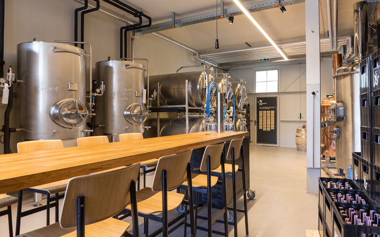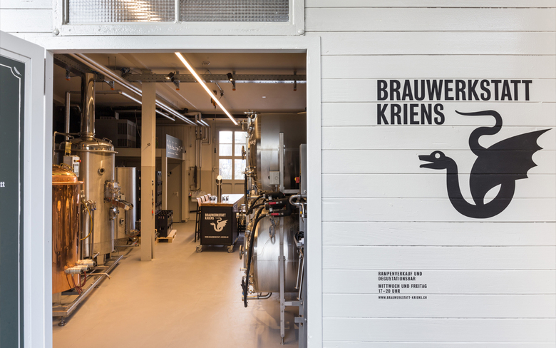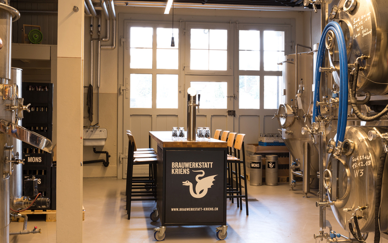 In der alten Teigwarenfabrik auf dem Teiggi Areal in Kriens hat die Brauwerkstatt Kriens ihre Tore mit dem MONS-Bier geöffnet. Der Entwurf legt Wert auf den Erhalt möglichst vieler historischer Elemente, wie die alten Tore und auch die farbige Zweiteilung der meisten Wände des Bestands. Das Zentrum der Brauerei bildet ein fahrbarer Eichenholz-Bartisch mit integrierter Zapfsäule. Alle für den Barbetrieb benötigten technischen Elemente sind im Kopfende des Tisches eingebaut. Zu Zeiten des Rampenverkaufs und bei Anlässen dient der Tisch als Degustationsbar - während des Brauvorgangs wird er zum Arbeitstisch. Die alte Steintreppe der Halle wird als Ausstellungsfläche für die Sixpack-Kartons genutzt. Die Wand dahinter ist anthrazit gehalten um die grafisch edlen Kartons sowie die Braukessel hervorzuheben.