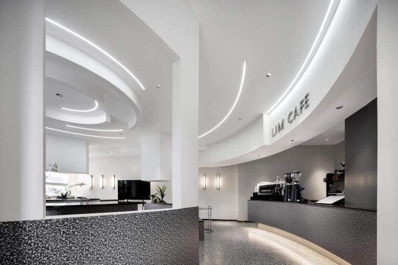 在空间布局上,我们将本次项目最具特点的咖啡教培的区域作为空间的核心,围绕这个核心功能用层层嵌套的同心圆来延展整个空间的设计。用精密的流线让进入空间的人们能有类似动态剧场一般的体验,我们希望能够通过这个项目来讨论小空间中的社交尺度和动线关系。