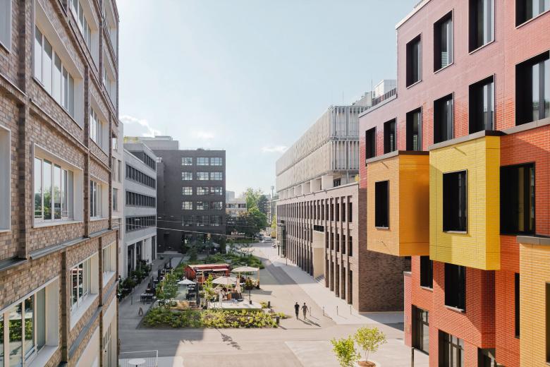 In addition to office space, the Macherei provides a vide range of typologies such as hotels, restaurants, fitness areas and a supermarket. It is a small, self-sufficient cosmos in its own right, but thanks to its good public transport connections and urban development, it is also an ideal base from which to travel quickly.